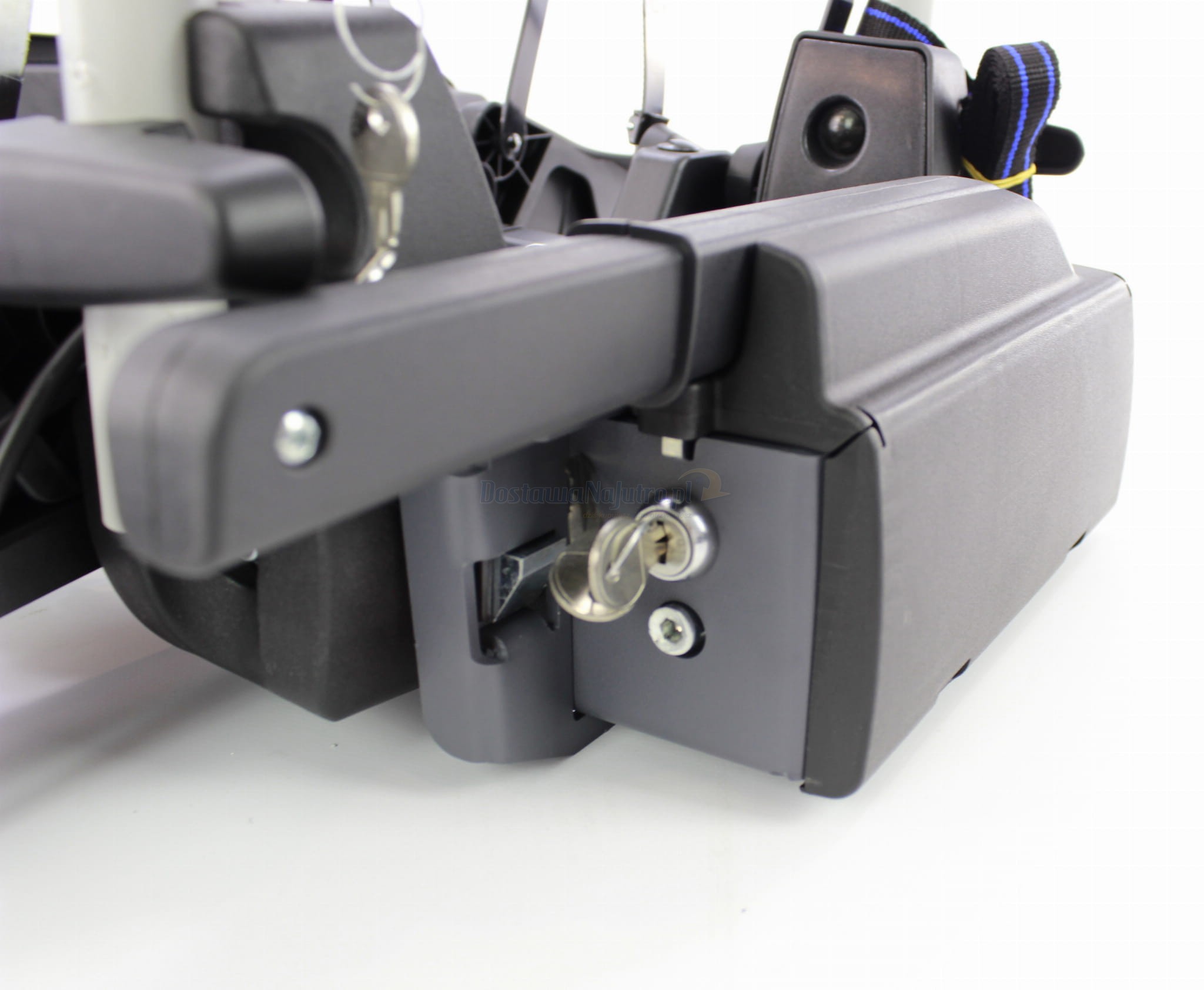 - bagażnik posiada zabezpieczenie przed kradzieżą bagażnika założonego na hak - zamykany na zamek