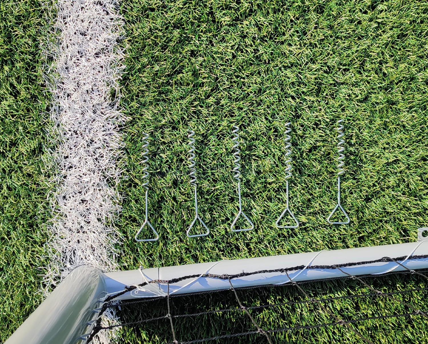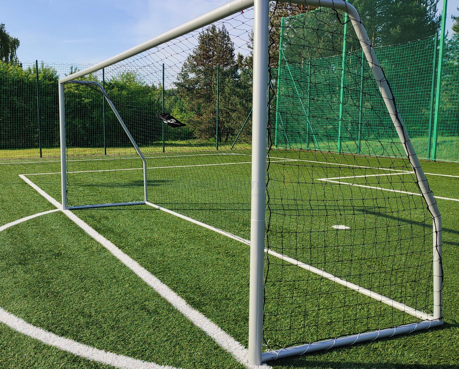 W komplecie znajduje się mocna siatka oraz kołki kotwiczące, umożliwiające stabilne i bezpieczne zamocowanie bramki