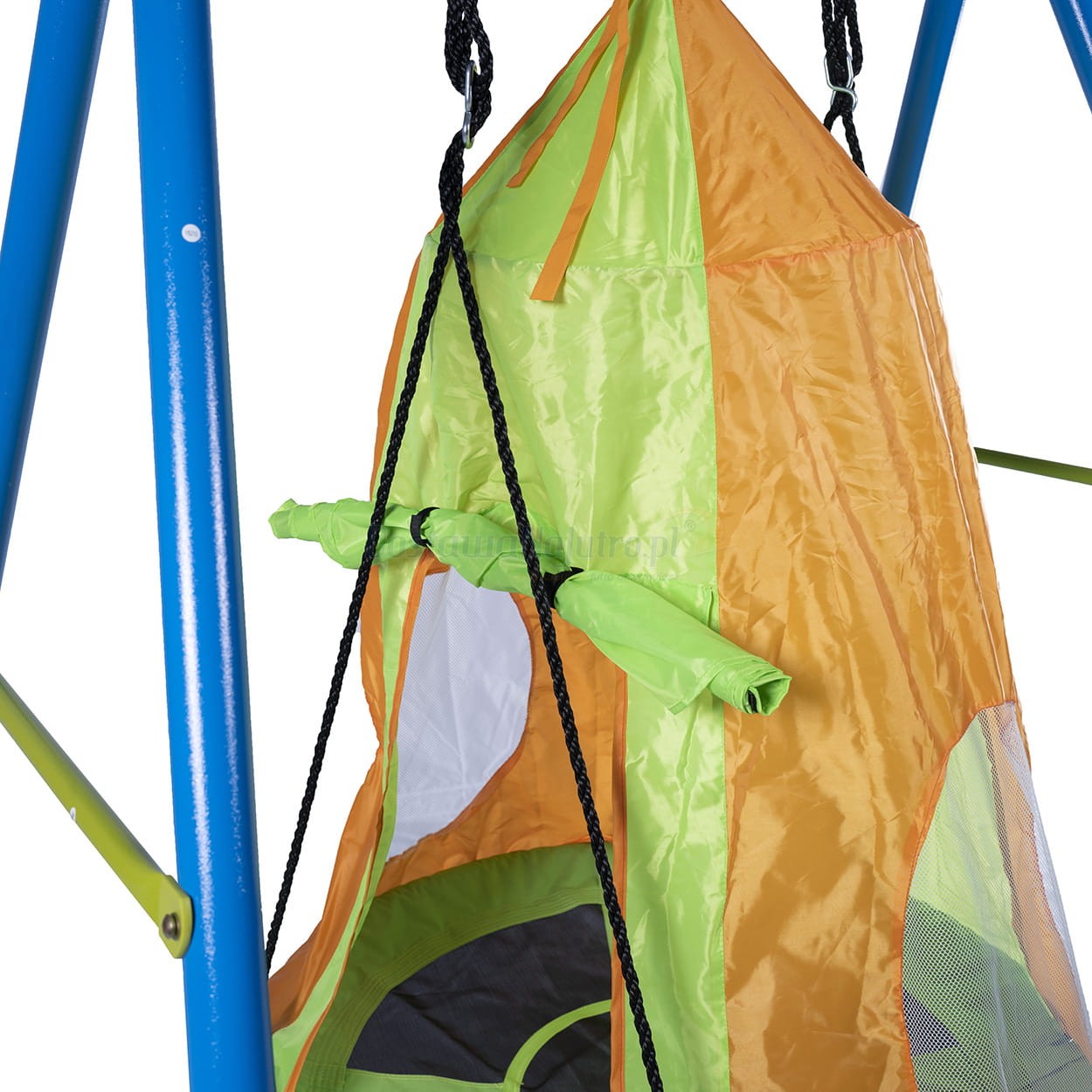 z namiotem, który uprzyjemni czas zabawy na huśtawce