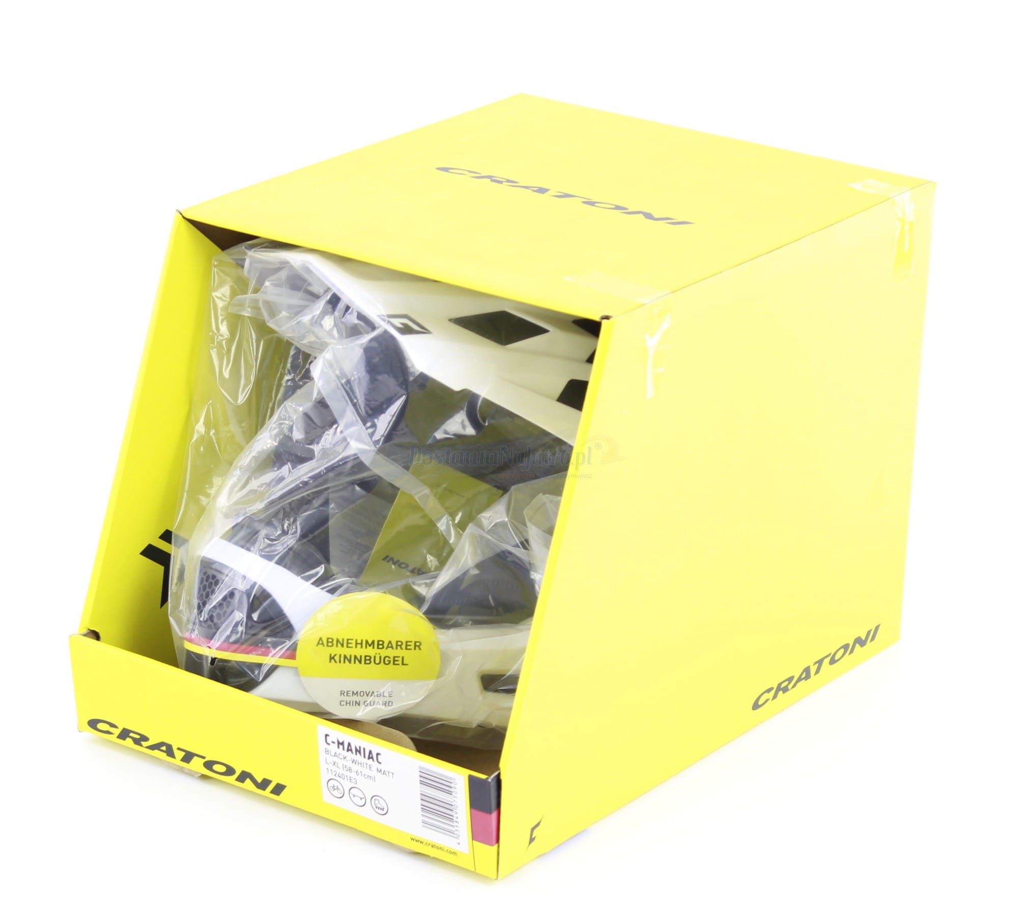Kask freeride full face Cratoni C-MANIAC odpinany ochraniacz 2w1 czarno biały