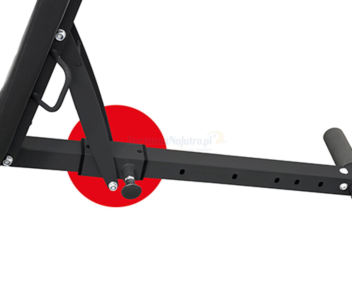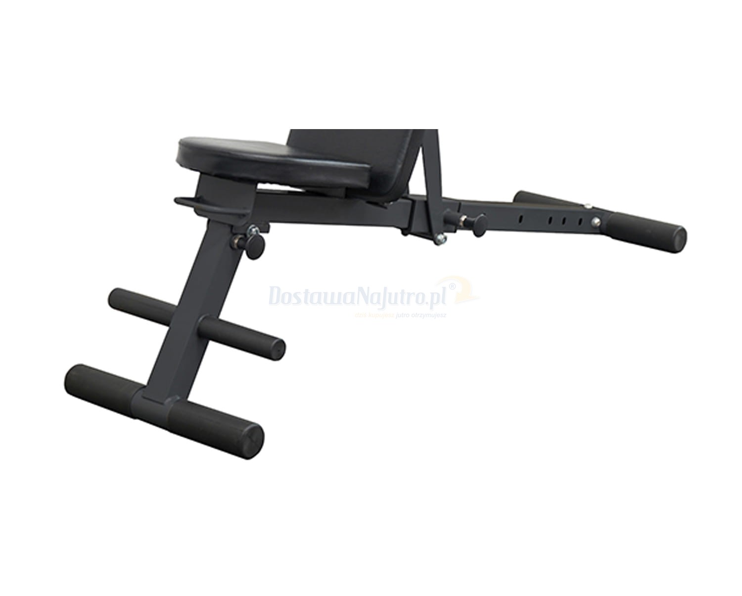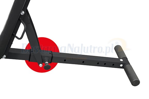 Wielofunkcyjna ławka posiada podpórkę na nogi, idealną na brzuch.