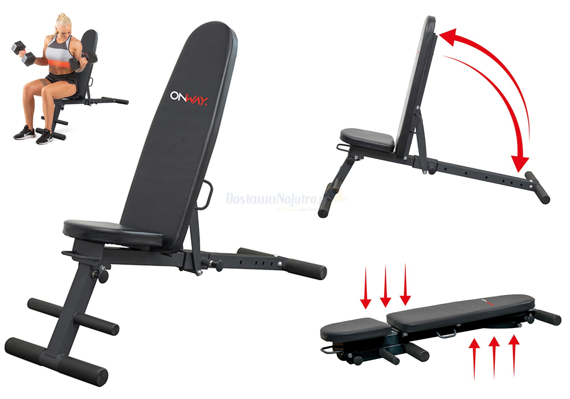 Składana i regulowana ławka treningowa OnWay jest wielofunkcyjnym urządzeniem niezbędnym do treningu w domu.