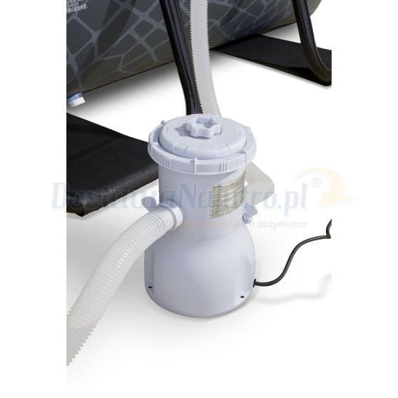 Wąż pompy doprowadza wodę do pompy. Tam jest filtrowany, a następnie wraca do basenu przez wąż. Podczas ustawiania pompy filtrującej należy koniecznie uwzględnić przewód zasilający o długości 2 m.
