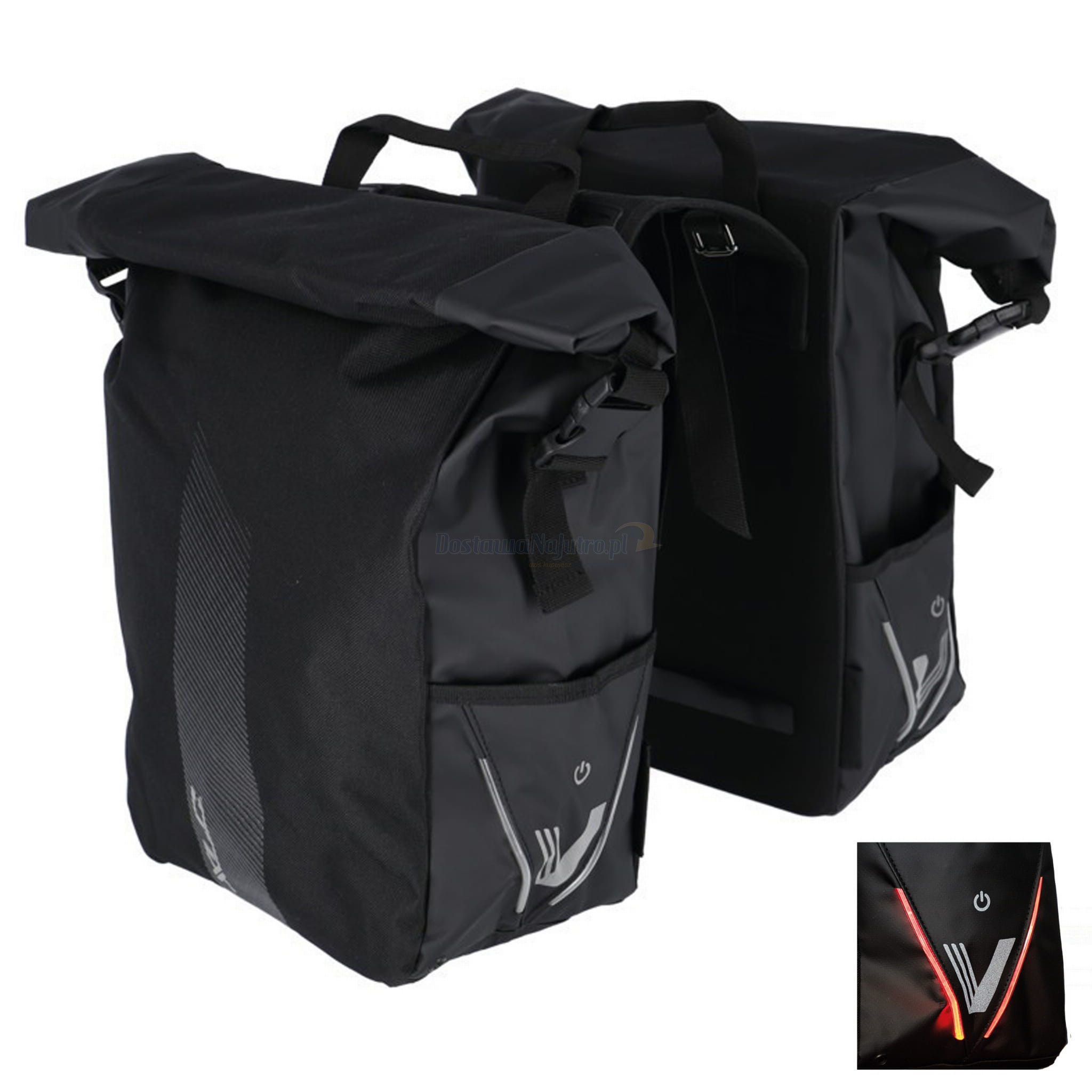 Sakwy rowerowe sakwa XLC BA-S106 zwijana podwójna V-light LED