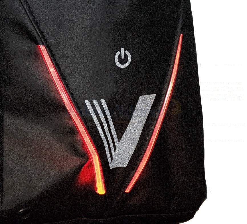 - boczne reflektory LED V-light świecące na czerwono z boku, trzy tryby świecenia